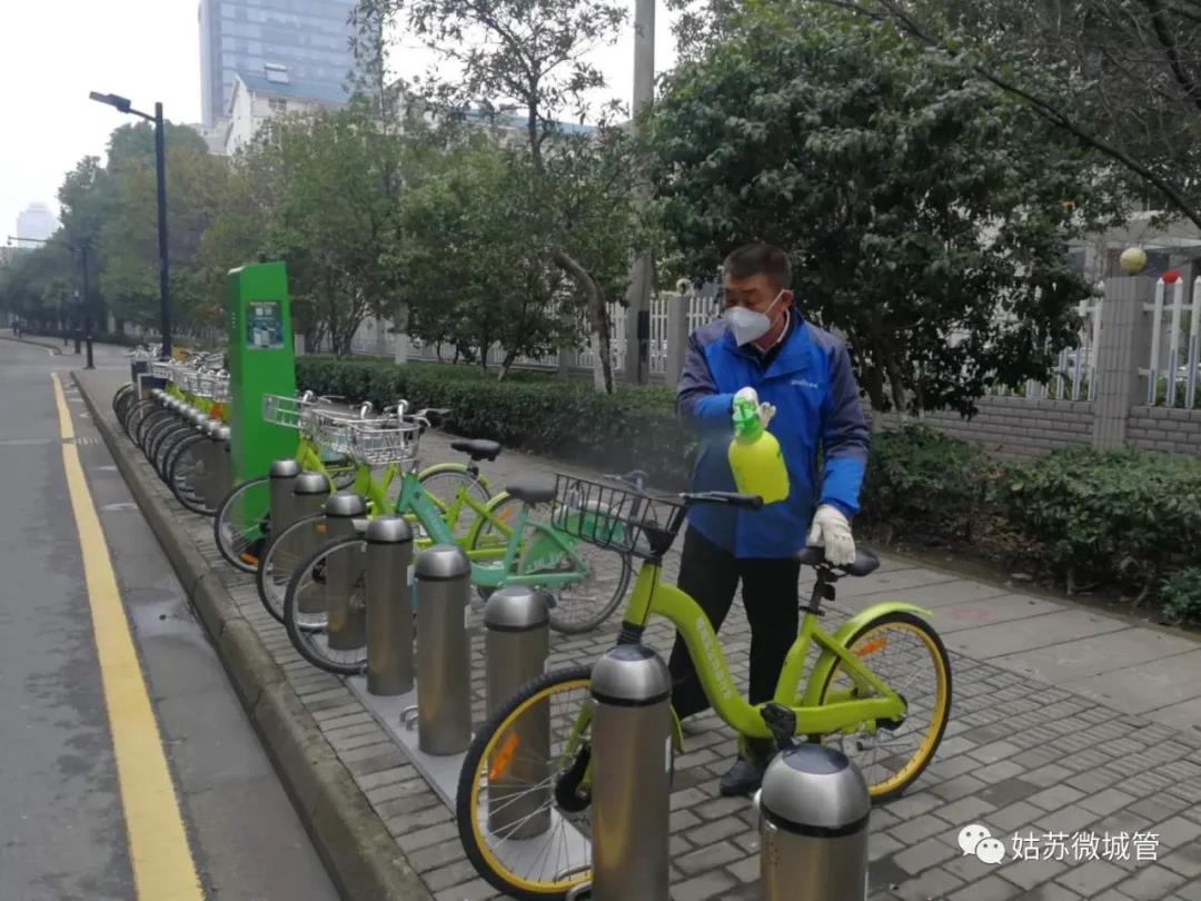 運營單位采購消毒防護(hù)用品、組織工作人員對蘇州姑蘇區(qū)所有公共自行車站點使用有效氯為1000mg/L~2000mg/L的含氯消毒溶劑進(jìn)行不間斷消殺,重點是站點控制柜(整體)、車樁讀卡區(qū)、自行車車把、手剎、車座、車筐等市民騎行時易接觸部位。