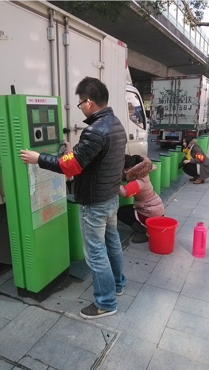 連日的陰雨天氣,使得公共自行車上沾滿了泥濘和污漬,社區(qū)組織志愿者為周邊的公共自行車進(jìn)行擦洗,帶上提早準(zhǔn)備好的水桶和抹布,用自己的實際行動對每一輛公共自行車進(jìn)行了擦洗。認(rèn)真,是每位志愿者的態(tài)度;細(xì)致,是每位志愿者的作風(fēng)。志愿者們不但為每一輛車子進(jìn)行了擦洗,還向過往的行人提倡“綠色出行”的環(huán)保理念。