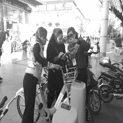 租賃公共自行車的程式簡單便捷,拉薩市民和外地游客只需符合年齡在16周歲以上65周歲以下的條件,持本人身份證或戶口本原件及復(fù)印件,交200塊錢押金并充值100元,就可以申領(lǐng)一張公共自行車租賃卡。租賃的收費也相當(dāng)優(yōu)惠,1小時內(nèi)免費,1小時以上至2小時收費1元,依次疊加,一天可以多次租借,而且每次租借的時間不累加。目前,拉薩市在布達(dá)拉宮、大昭寺、小昭寺等十五個景點設(shè)置了租賃店,總共投放了242輛公共自行車,受到了市民和游客的普遍歡迎。