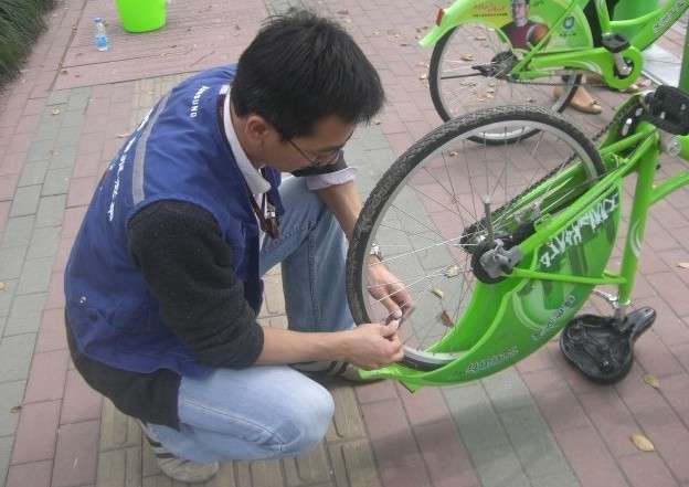 4月19日蘇州三星電子液晶顯示器有限公司組織員工對(duì)蘇州工業(yè)園區(qū)公共自行車進(jìn)行保潔和檢修。活動(dòng)現(xiàn)場(chǎng)大家不怕苦,不怕臟,積極參與其中。公共自行車在大家一番“照顧”下,煥然全新,以全新的面貌為市民服務(wù)。