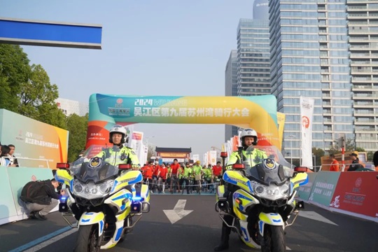 天朗氣清,湖波蕩漾,在全國(guó)場(chǎng)地自行車錦標(biāo)賽冠軍唐佳雯、沈燕的鳴笛發(fā)令下,騎行正式開(kāi)始。榮譽(yù)騎行隊(duì)和大眾騎行隊(duì)先后出發(fā),以湖景街東太湖大道路口為起點(diǎn),沿太湖而行,領(lǐng)略灣區(qū)魅力,感受新城風(fēng)光。