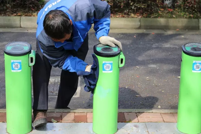 ”要說到有什么辛苦,擦這些樁子算一個“,要擦的亮蹭蹭可不是個簡單的事,這一天約是200多個車樁,除去忙時補(bǔ)車的時間,每天也要抽空把每個樁擦一擦,這些小小的舉動都維護(hù)著蘇州這個城市的形象。