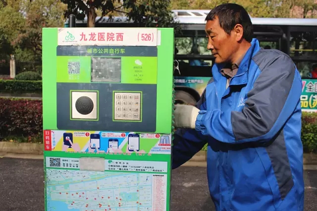公共自行車系統(tǒng)的正常運(yùn)行,除了需要巡檢員,調(diào)度員同樣不可或缺。自行車專用調(diào)度的叔叔們,繞在各個站點(diǎn)把壞掉的自行車檢查一遍,再帶走修理。張叔叔忙的時候也會搭把手一起搬運(yùn)自行車,特別的熱情~