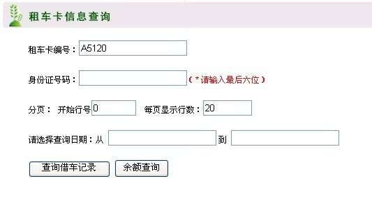 用戶只需將卡號(hào)與身份證號(hào)碼的最后六位輸入查詢系統(tǒng)中,就可以查詢余額和借還車記錄,如用戶沒(méi)有及時(shí)查詢余額,我們將會(huì)在余額低于20元時(shí)電話通知用戶。