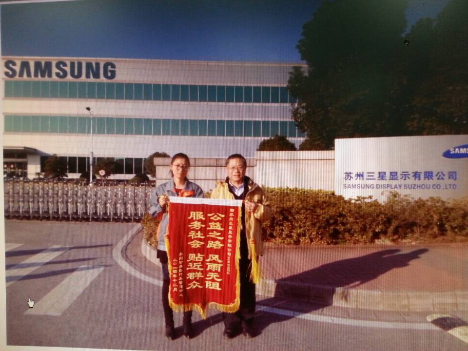 2014年12月22日下午,公司領(lǐng)導(dǎo)為三星液晶顯示器的工作人員贈(zèng)送錦旗。對(duì)他們?yōu)楣沧孕熊?chē)管理工作的支持表示感謝。幾年來(lái),風(fēng)雨無(wú)阻堅(jiān)持為自行車(chē)做保潔。讓美麗的蘇城更增添了靚麗的風(fēng)景線(xiàn)。