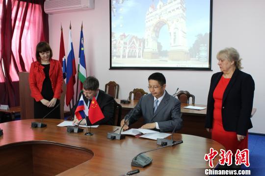 中俄雙方代表簽訂布拉戈維申斯克市公共自行車項(xiàng)目建設(shè)意向書 胡書軍 攝