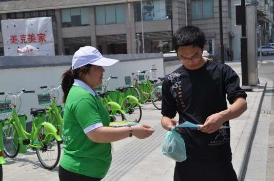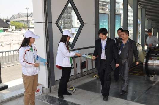 4月28日蘇州軌道交通開通,軌道交通沿線公共自行車也相繼開通運(yùn)營,為了讓市民更加了解公共自行車,結(jié)合軌交開通,我服務(wù)中心工作人員在樂橋站點(diǎn)向市民派發(fā)彩頁,宣傳公共自行車。
