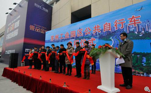 1月1日,蘇州工業(yè)園區(qū)公共自行車在湖西新城鄰里中心舉行啟動儀式。至此,經(jīng)過一個多月的施工、安裝、調(diào)試,園區(qū)公共自行車一期工程72個站點正式啟用,已投放1880輛公共自行車。