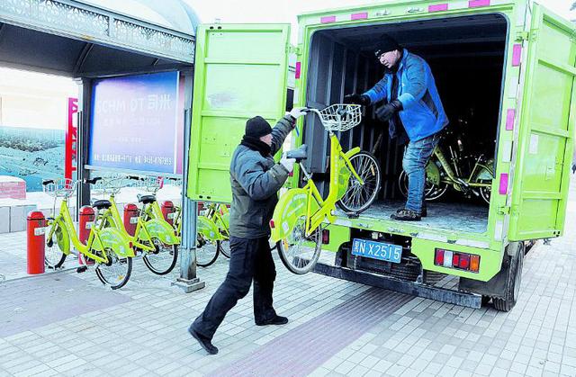 25日,黑河市區(qū)便民公共自行車運行系統(tǒng)全面關(guān)閉,進入冬季停運階段,工作人員將各網(wǎng)點自行車運回庫進行檢修。