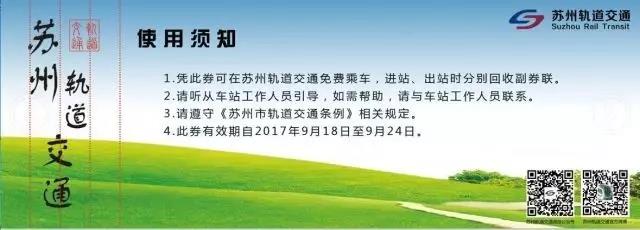 活動四:積極倡導(dǎo)全民乘坐公交9月16日9:00-17:00,蘇州軌道交通將派發(fā)免乘體驗券,市民可以憑行駛證原件至軌道交通1號線玉山路站、廣濟南路站、東環(huán)路站、星湖街站;2號線陸慕站、三香廣場站、寶帶橋南站、月亮灣站;4號線蘇州灣東站、南門站、孫武紀(jì)念園站、越溪站,以上12個車站的客服中心領(lǐng)取免費體驗券,每張行駛證原件可領(lǐng)取2張免費體驗券。市民憑免費體驗券可在2017年9月18日至9月24日運營時間內(nèi)免費乘坐蘇州軌道交通。每張體驗券可使用兩次,一人一票。