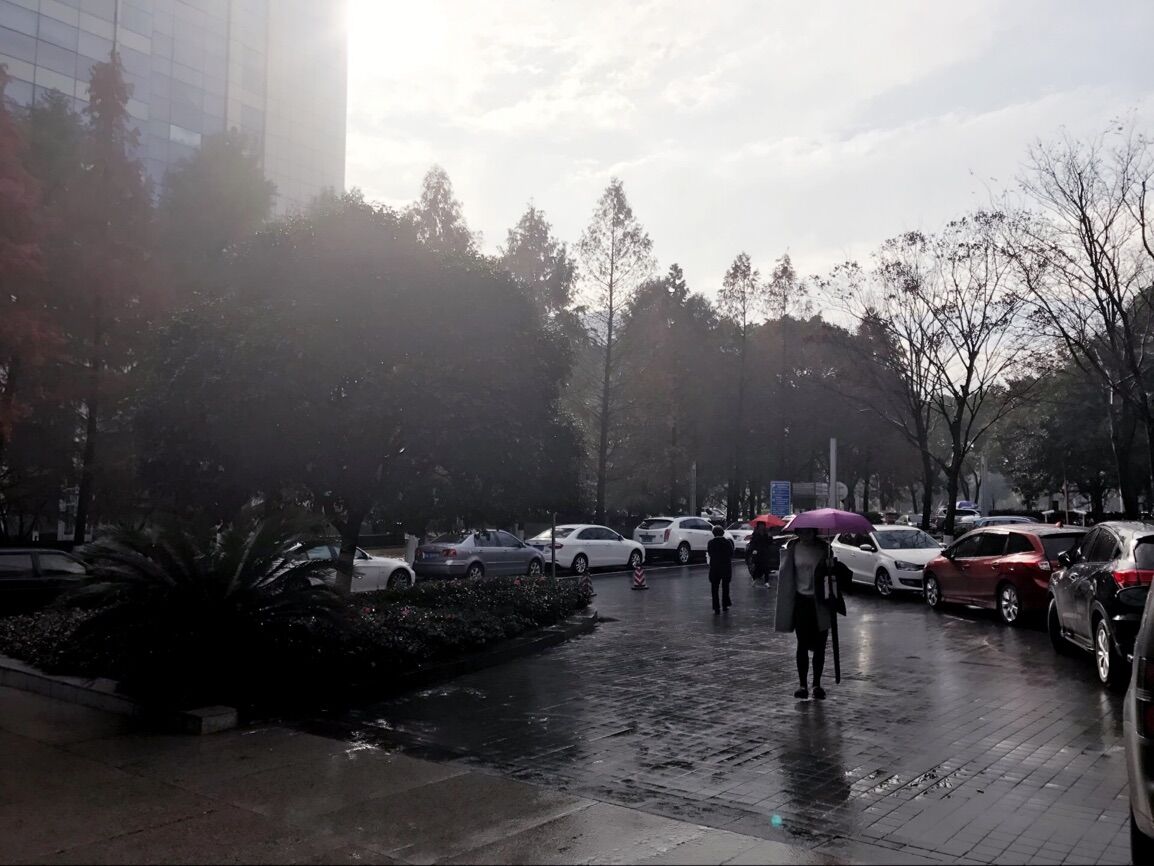 隨著白天的氣溫升高,霧氣逐漸消散。有心的市民發(fā)現(xiàn),下午出現(xiàn)了一點陽光。然而奇妙的是,居然出現(xiàn)了一半晴天一半雨天的“太陽雨”現(xiàn)象。
