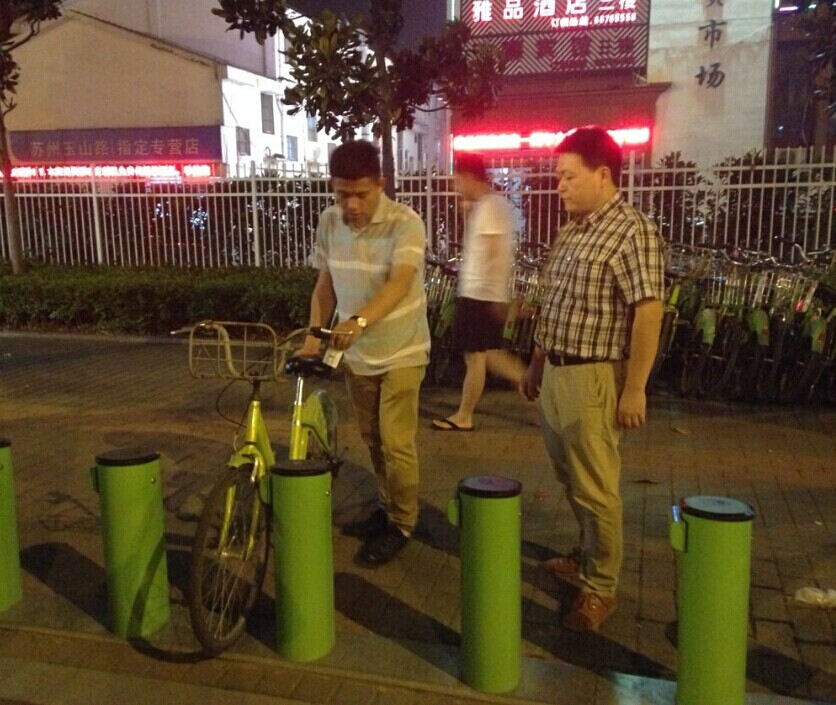 蘇州高新區(qū)城市維護管理處是高新區(qū)公共自行車項目的監(jiān)管單位。監(jiān)管單位領導張科長和蘇州公共自行車管理中心劉總,在6月18日晚上,放棄休息時間,對高新區(qū)公共自行車站點進行了現(xiàn)場突擊檢查。他們對抽查的站點車輛進行逐一檢查。檢查結果車輛擺放整齊、備車規(guī)范、備車實數(shù)與后臺系統(tǒng)顯示相同,衛(wèi)生狀況良好,經(jīng)當晚系統(tǒng)匯總后,高新區(qū)區(qū)內公共自行車保有量達到92%以上。