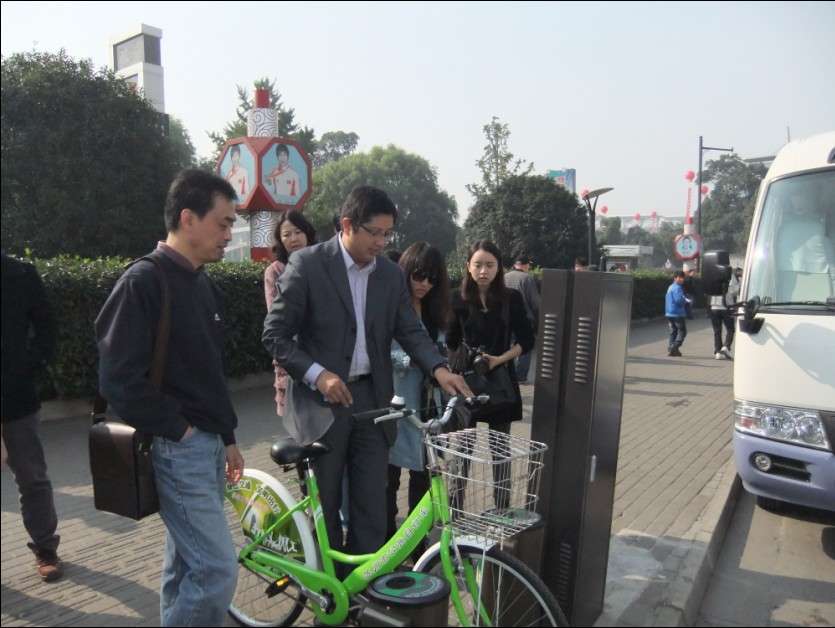 12日上午孫總接受記者的采訪,向記者介紹了蘇州公共自行車在創(chuàng)建旅游標準化方面的工作。