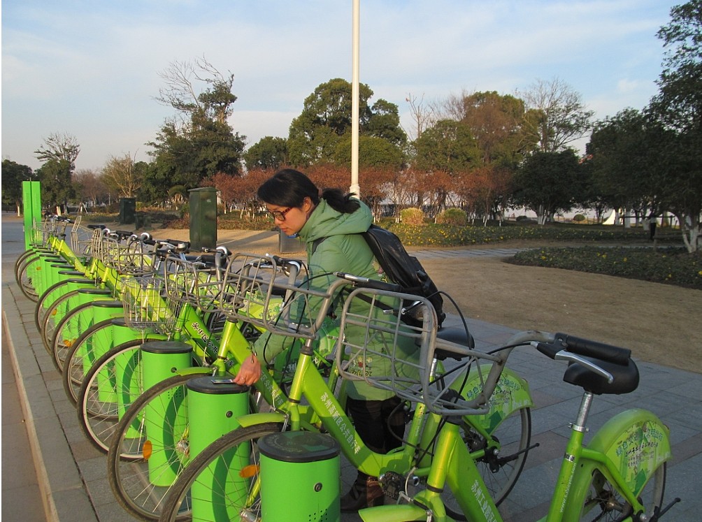 我們投入了大量的人力和物力,目前,蘇州公共自行車總的站點有1200多個,辦卡量44萬多,投放公共自行車總數(shù)2萬多,每天借還車次數(shù)在10萬次以上,它配套了軌交、公交、火車站、汽車站,真正解決了市民出行的最后一公里。