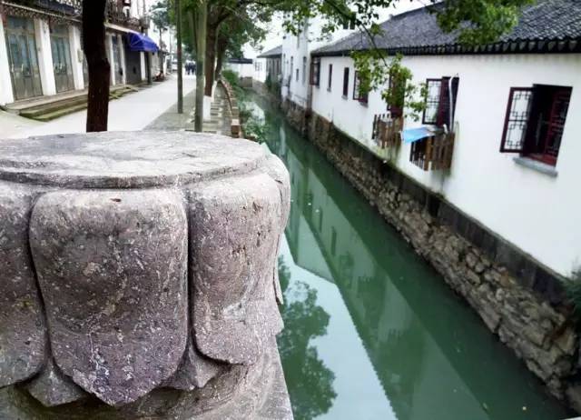 從橋上也能看到光福古鎮(zhèn)里的江南風(fēng)光。枕河人家,白墻黑瓦,流水潺潺,也是頗有意境。