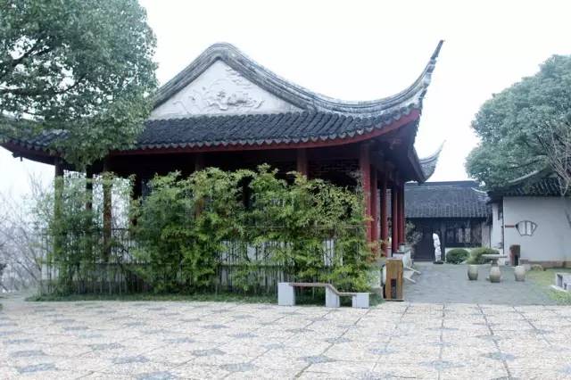 櫻花林旁邊還有座茶室,屆時可以一邊賞花一邊品茶。茶室對面的山上,就是光福寺塔。
