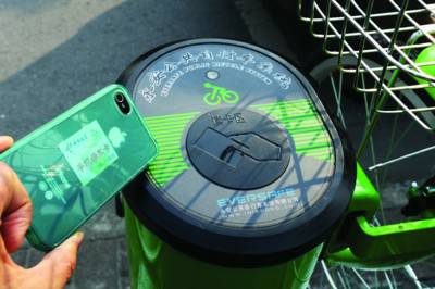 這張比郵票稍大的標(biāo)貼卡可貼在手機(jī)上、皮夾里,使用時(shí)只需在公共自行車(chē)站點(diǎn)照一照就可以完成借、還車(chē)。