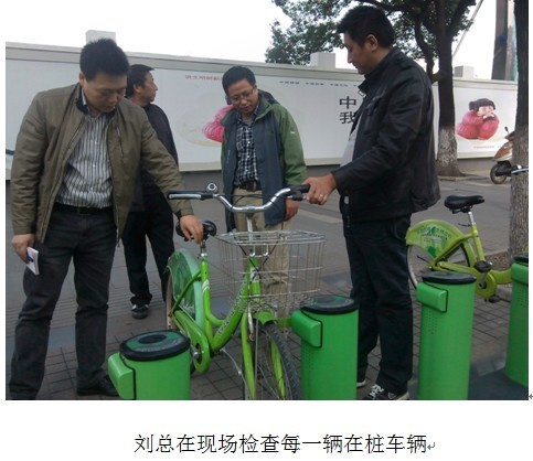 2013年11月16日,蘇州分公司由總經(jīng)理劉冬帶隊,各區(qū)運營主管及客服主管參加組成檢查組,放棄周六休息到現(xiàn)場檢查站點狀況(故障車輛在樁、保潔、辦卡點的7s)等工作。