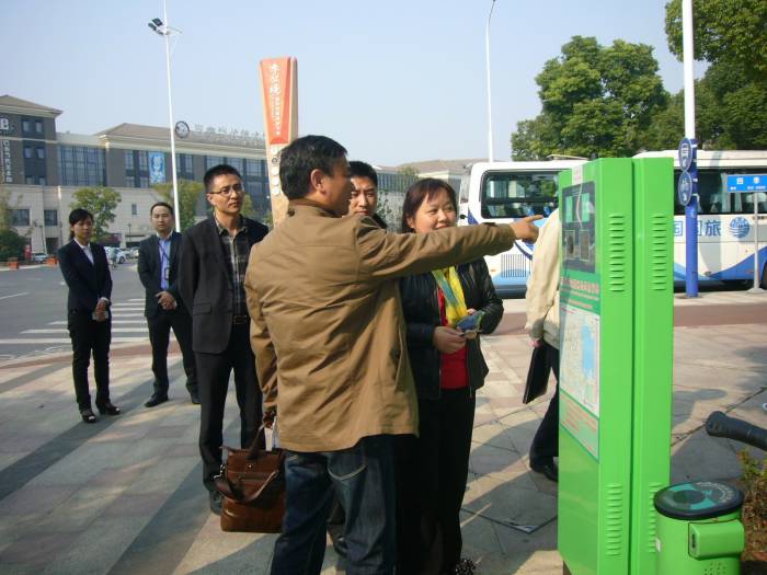 2013年11月7日蘇州公共自行車在園區(qū)創(chuàng)標辦的主導下迎來了旅游標準化試點企業(yè)的省級驗收。下午13點20分,在李公堤東端的金雞湖游客中心大廳內(nèi),由金雞湖景區(qū)客服人員和公共自行車工作人員配合演示了景區(qū)公共自行車卡的租借流程。辦卡完畢后,在工作人員引領下檢查組前往公共自行車站點“李公堤東端”,現(xiàn)場演示了借還公共自行車的流程、卡的自助查詢和周邊站點基本信息查詢等功能。驗收組的領導懷著濃厚的興趣對公共自行車功能、使用狀況及與景區(qū)工作對接等方面進行了詢問。公共自行車管理中心領導對目前蘇州工業(yè)園區(qū)公共自行車的運營情況、日常管理等工作作了簡要的匯報。